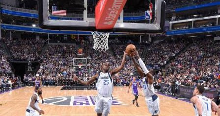 小蒂姆哈达威在达拉斯小牛队对阵洛杉矶湖人队的比赛中打得很紧。